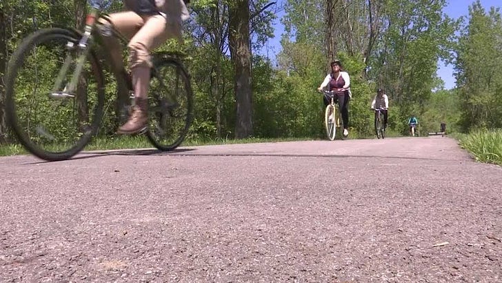 The idea of the Great American Rail Trail (GMRT) is turning old, unused, and historic train rail lines into bikes paths, and then connecting them.