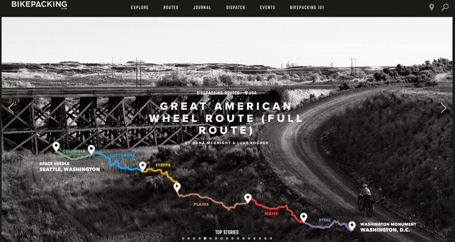 More recently, Bikepacking.com introduced a new cross-country option: the Great American Wheel Route.