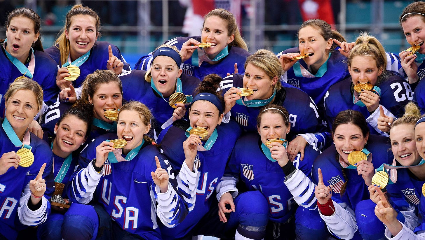 Luckily, those games ended on a patriotic note, with the men’s and women’s hockey teams taking gold and proudly placing the flag over their hearts.